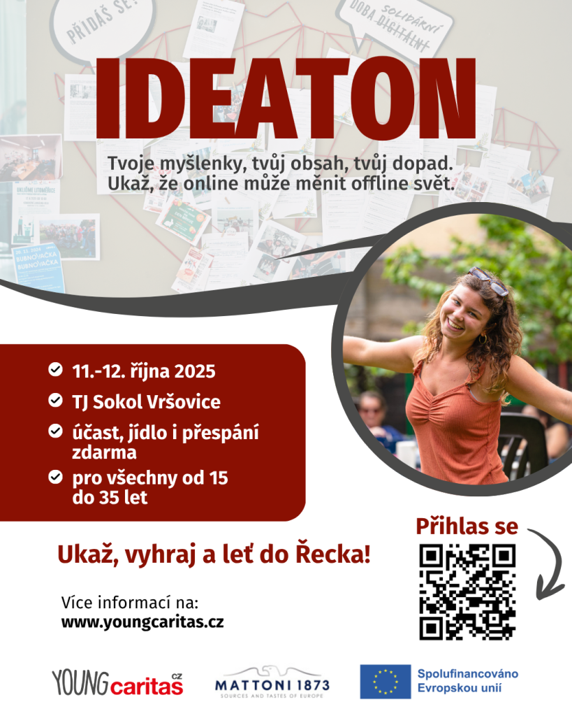 Young Caritas Praha zve mladé lidi ve věku 15–35 let na inspirativní akci GoViral! Ideaton, která proběhne 11.–12. října 2025 v pražských Vršovicích.