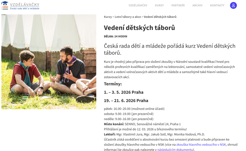 České radě dětí a mládeže se uvolnily místa na kurz Vedení dětských táborů, který se koná již tento víkend od 1.-3. 5.  Přihlásit se na něj můžete zde.